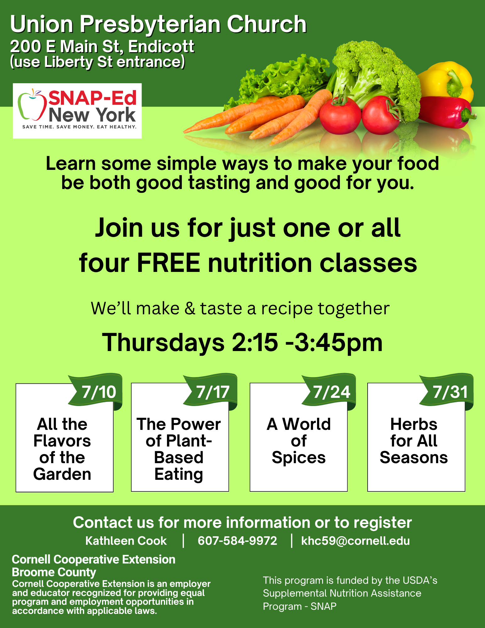 Join us for part 4 of 4 free nutrition courses. Learn simple ways to make your food taste good and be good for you.