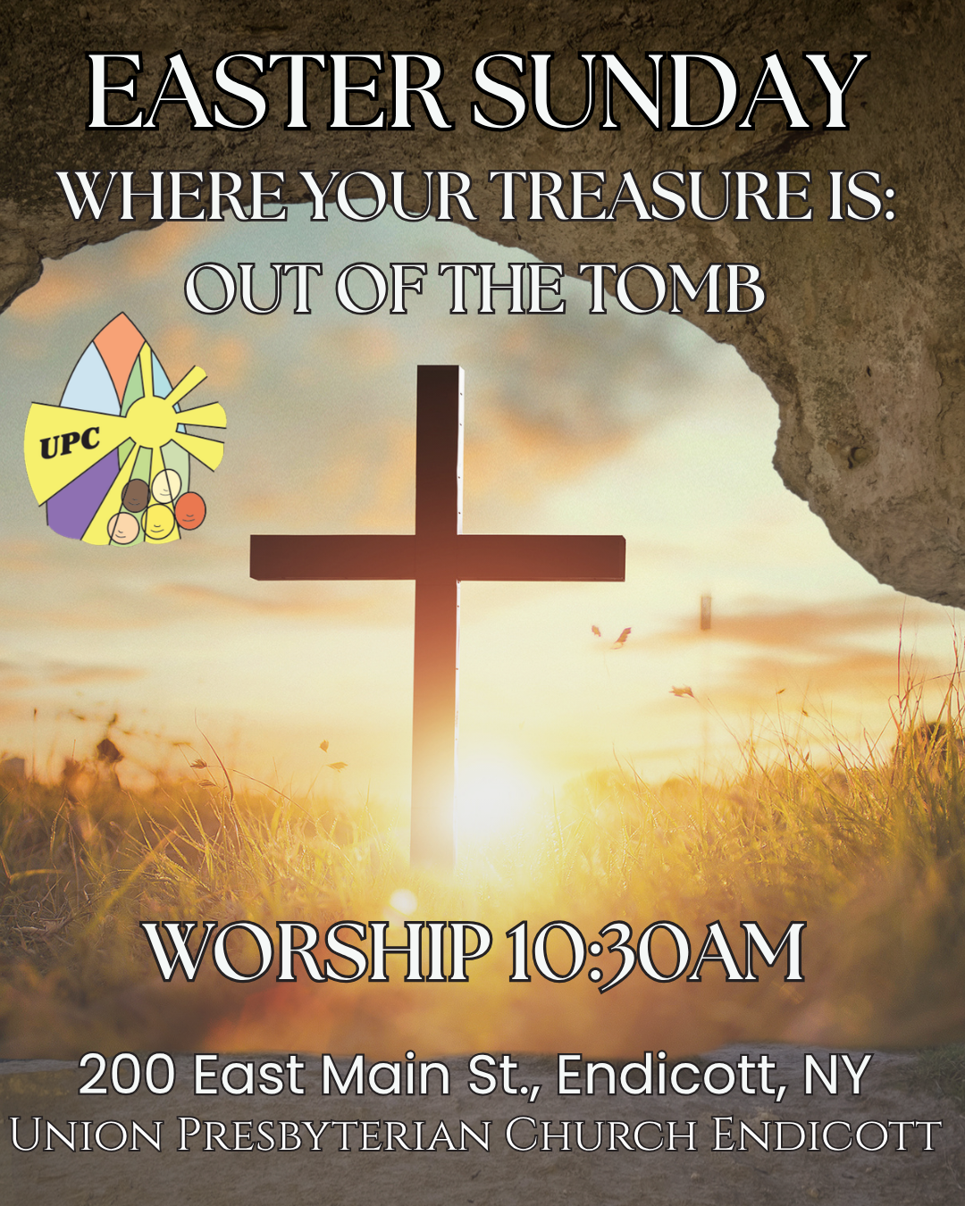 Join us at Union Presbyterian Church of Endicott on Easter Sunday, when the Alleluias return to our lips the old wooden cross blooms with colorful flowers. Join us as we recall the amazement and fear, the sorrow turned to joy, and God’s promise of new life to us all.