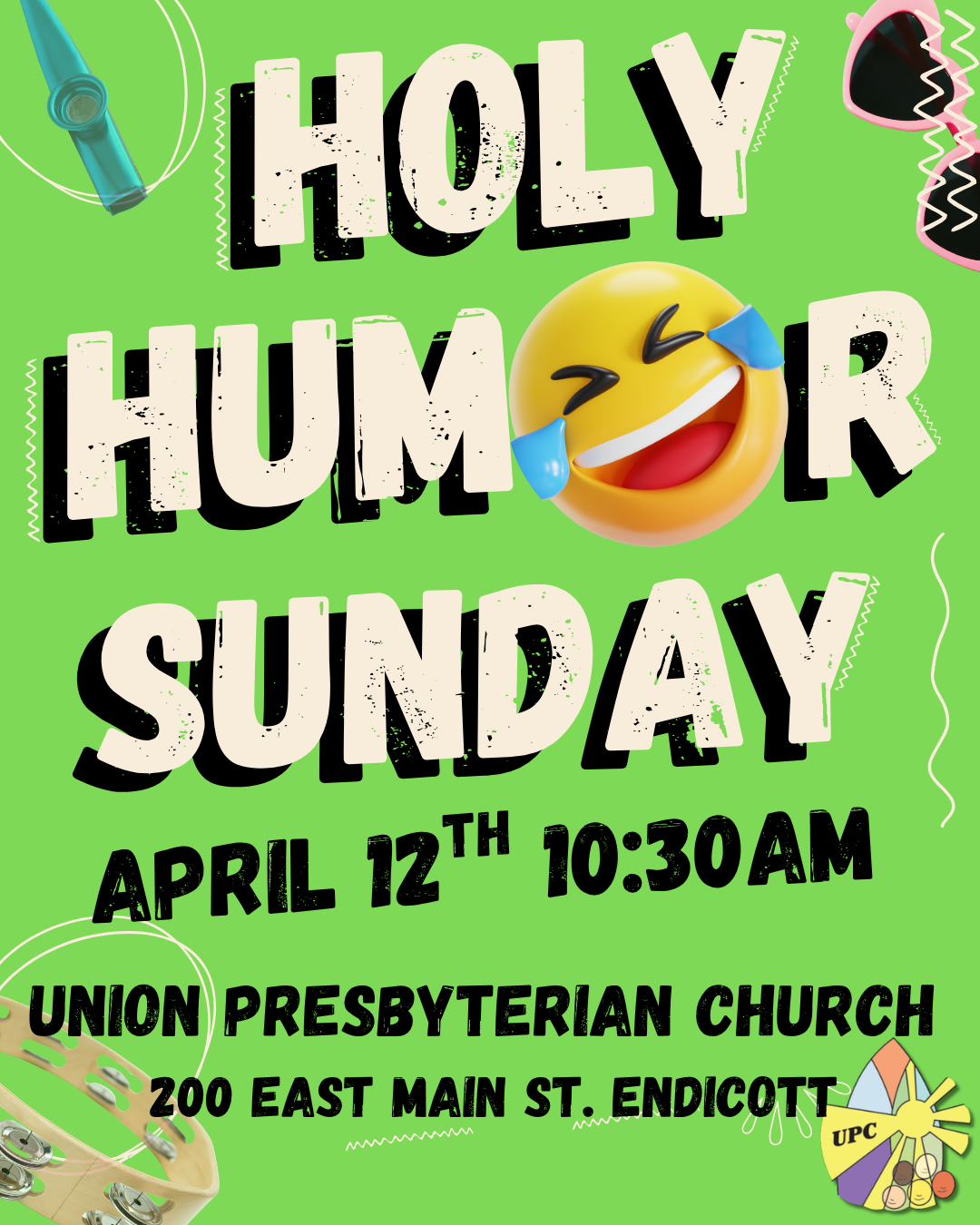 You are hereby invited to bring your silliest self, your loudest laugh, your sensational smile, a funny hat, and a kazoo or other fancy musical instrument, to join us in celebrating Holy Humor Sunday! This is a custom that arose in the very earliest days of Christianity. It is rooted in the writings of the early church theologians, who reasoned that God had played a tremendous practical joke on the devil by raising Jesus from the dead. They called it risus paschalis—the Easter laugh!